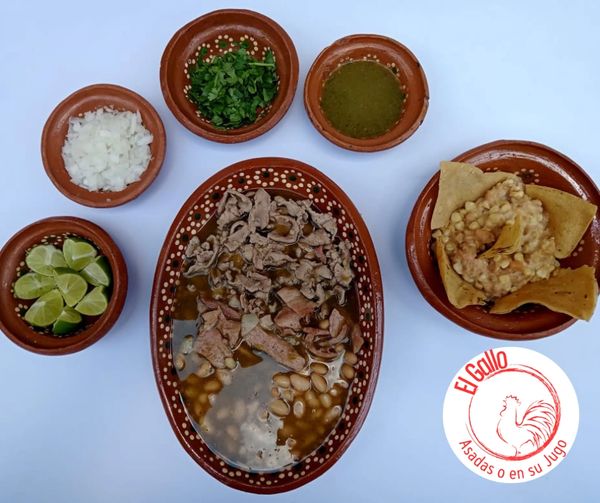 100grs de carne de res rebanada, 50grs de tocino, frijolitos de la olla, tortillas a mano, salsa martajada, frijolitos con elote y totopos.