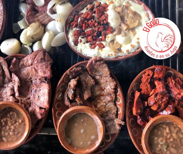 200grs de arrachera, 100grs de tocino, frijolitos de la olla, tortillas a mano, salsa martajada, frijolitos con elote y totopos.
